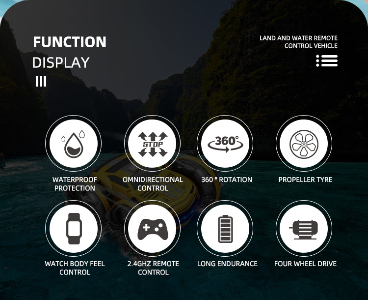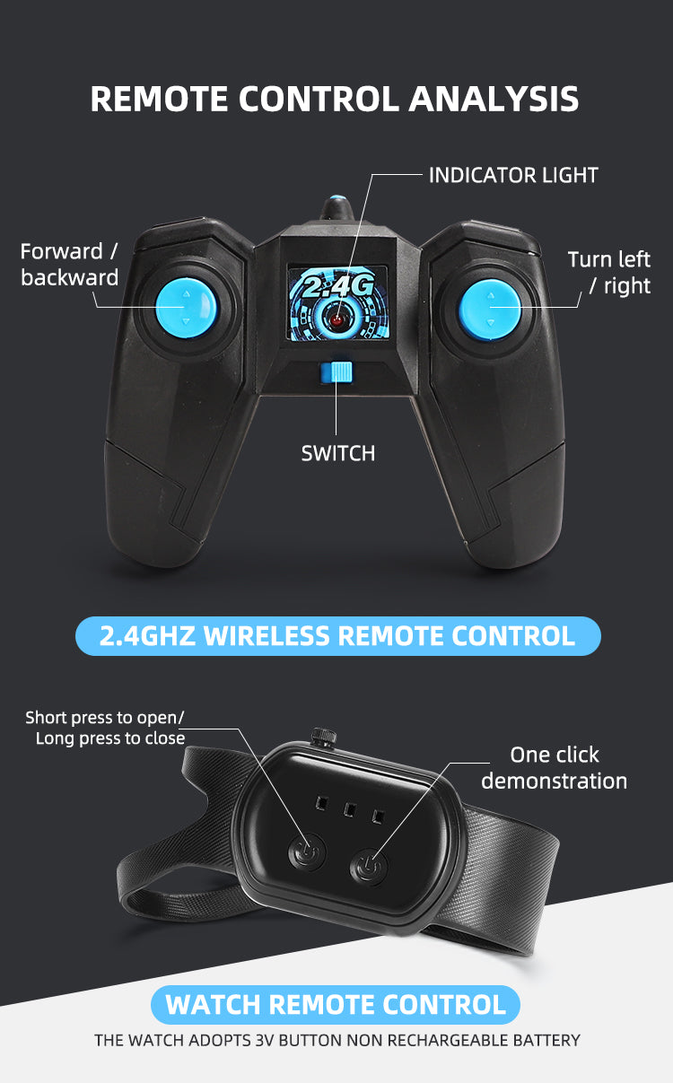 2.4Ghz Dual Control Waterproof RC All Terrian Toy Car. Poweful 4 Wheel Drive with Anti-skid wheel design. This stunt car can run on snow and rain.