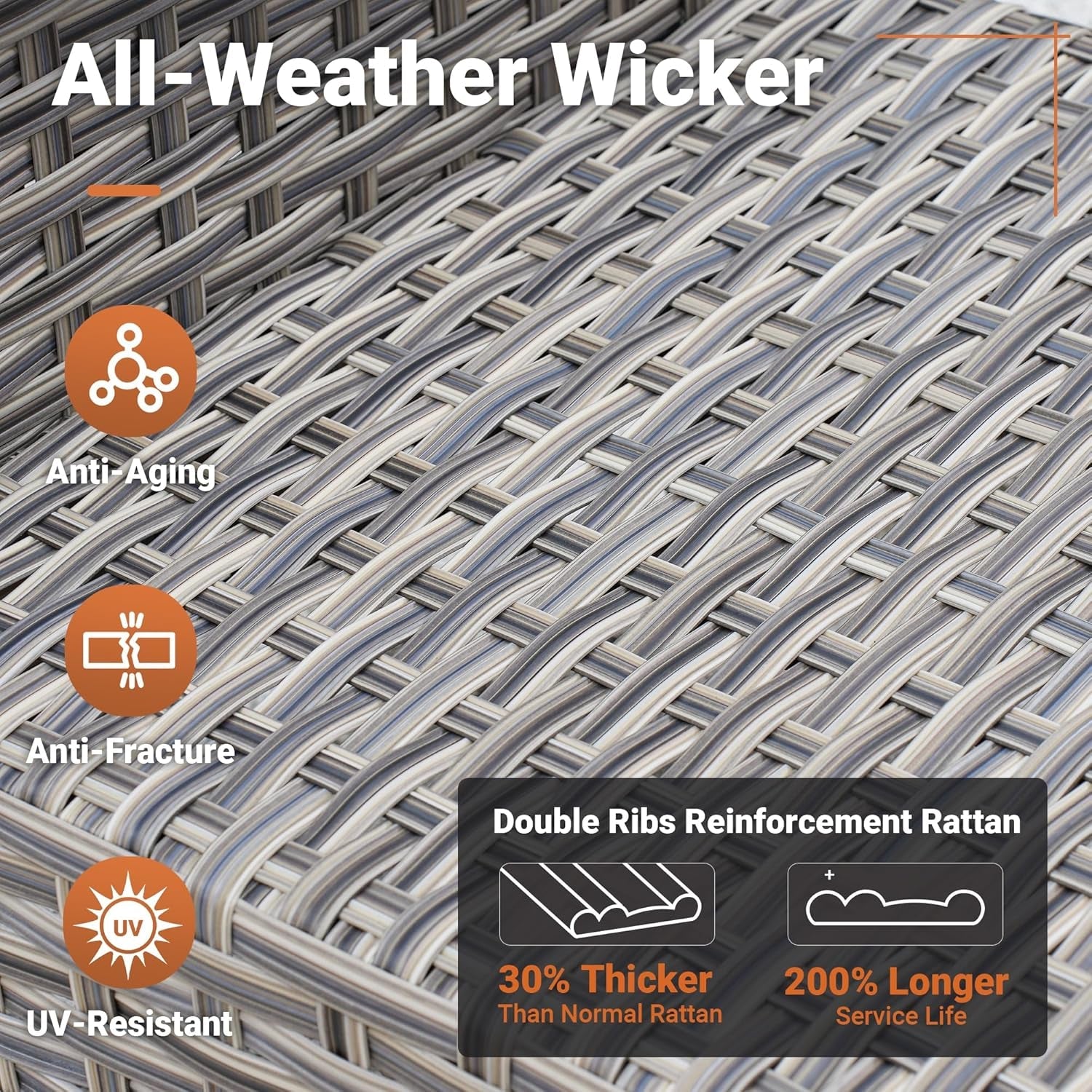 - Exceptional Durability: Made with ultra-thick rainbow wicker, our furniture withstands the elements, ensuring a lifespan that exceeds standard wicker.